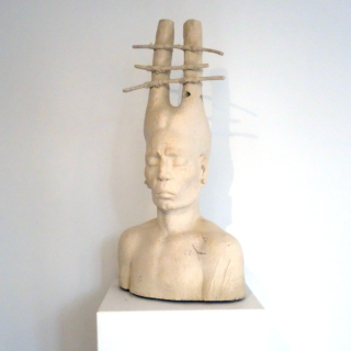 Son travail actuel, des bustes réalisés en taille directe sur bois sont des portraits d’anonymes qui évoquent de manière métaphorique nos croyances et nos différences, mais aussi les armures métaphysiques que nous nous tricotons pour nous protéger de la violence contextuelle et structurelle de l’existence.